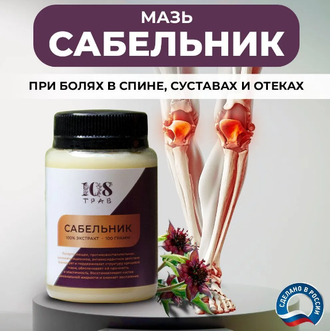 Мазь для суставов и связок обезболивающая. Экстракт сабельника болотного формирует и поддерживает структуру хрящевой ткани, обеспечивает ей прочность и эластичность, восстанавливает состав синовиальной жидкости и снимает воспаление.