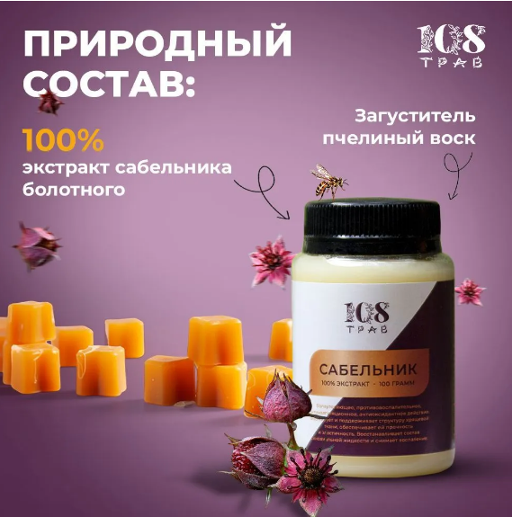 100% экстракт сабельника болотного, загуститель пчелиный воск