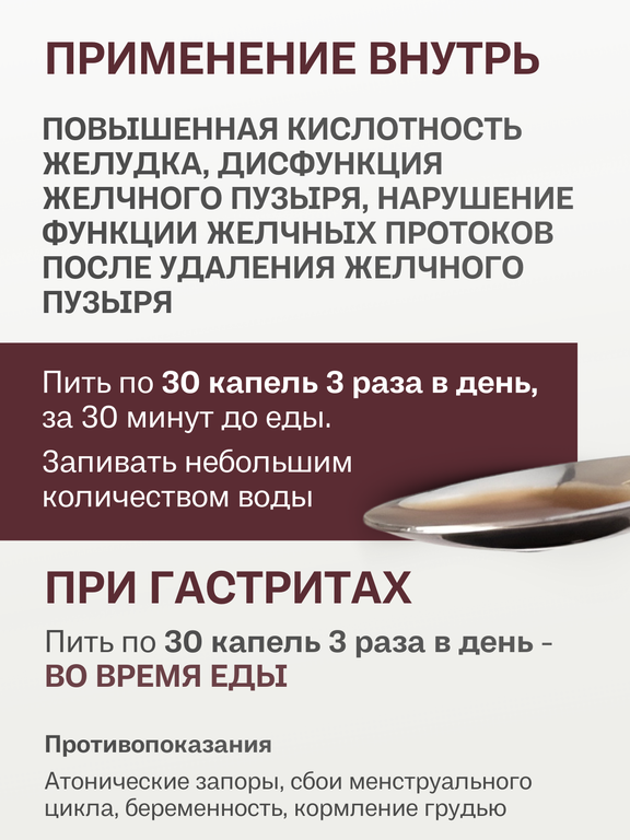 Применение: принимать по 30 капель 3 раза в день. Показания приведены по материалам народной медицины.