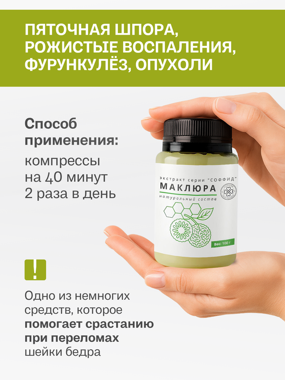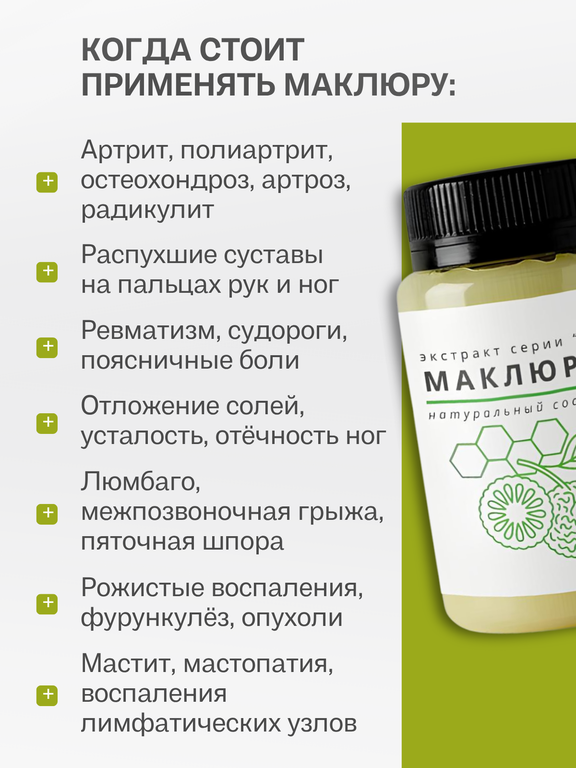 Показания: при боли в суставах в спине, снимает усталость и отеки, помогает при мастите, мастопатии. Стоит применять при артрите, полиартрите, остеохондрозе, артрозе, радикулите, распухших суставах, ревматизме, судорогах, поясничных болях, отложении солей, любмаго, межпозвоночной грыже, рожистые воспаления, фурункулез, опухоли, мастит, мастопатия, воспаление лимфатических узлов.