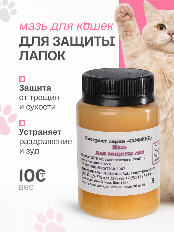 Показания: для защиты лапок, защита от трещин и сухости, устраняет раздражение и зуд, смягчение подушечек лап, поддерживание естественного состояния кожи.