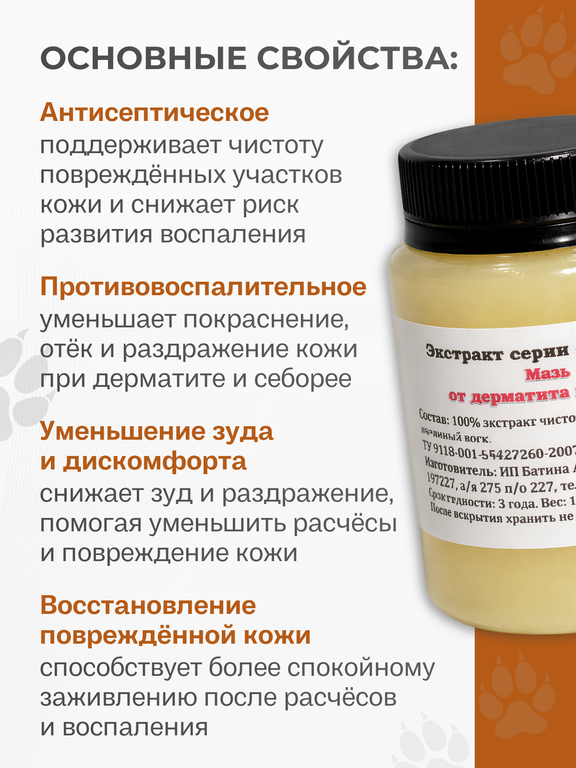 Показания: при дерматите, себорее, зуде и шелушении кожи; успокаивает раздраженные участки. Помогает при экземе, облегчает зуд и снимает покраснения, используется для удаления бородавок и папиллом у животных
