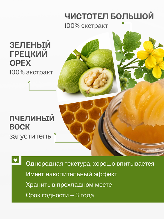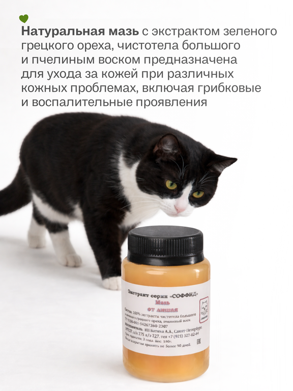 Применение: смазывать пораженные участки кожи 1 раз в день, чередуя с обработкой йодом, например, утром - мазь, вечером - йод. Показания приведены по материалам народной медицины.